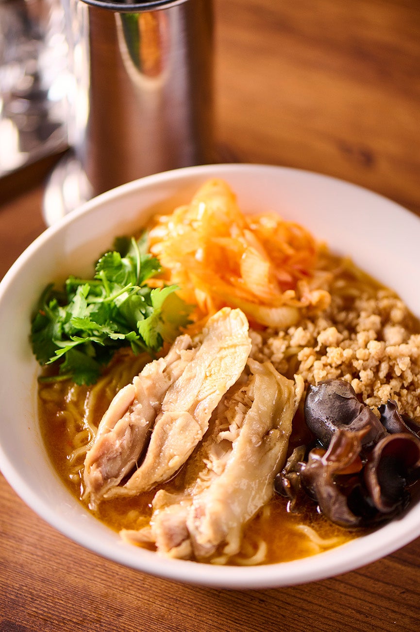ナンプラーベースの葱ダレと、コラーゲンたっぷりの濃厚スープはスパイシー&クリーミー。