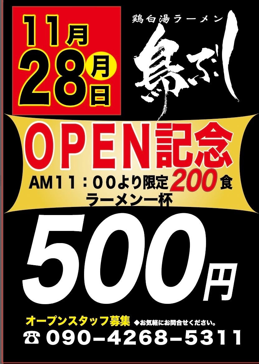 この度、ナハール株式会社(本社:東京都豊島区、代表取締役:ブイヤン・モハシン)は、山手線御徒町駅から徒歩2分のラーメン激戦区に「鶏白湯ラーメン 鳥ぶし」を11月28日(月)にオープンいたします。