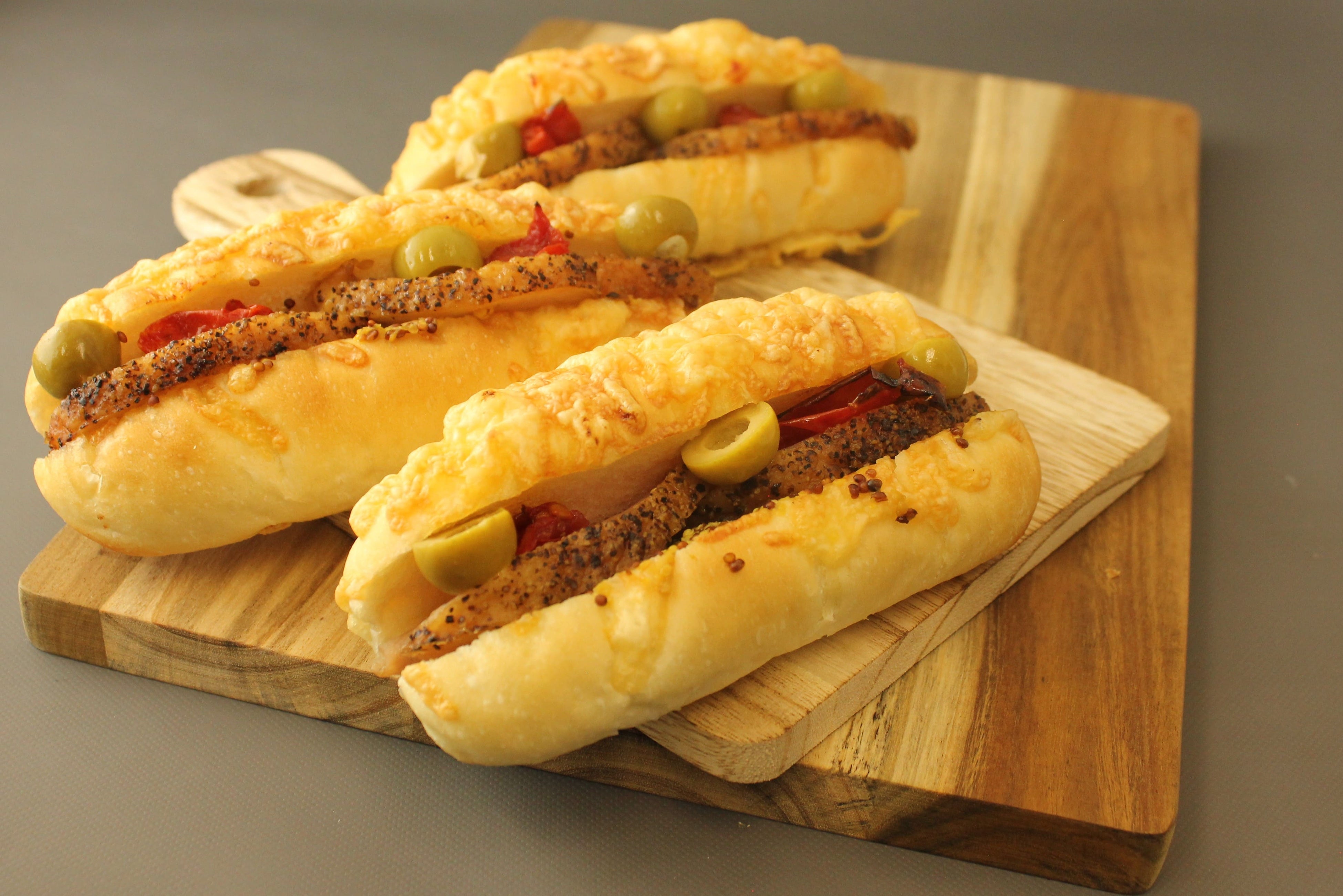 チーズをトッピングしたソフトな生地に合鴨を挟んだ贅沢なサンドイッチ。粒マスタードのしっかりとした酸味が合鴨の美味しさをより引き立てます。彩りよくトッピングしたセミドライトマトとオリーブも、ホリデーカラーを思わせる特別なあしらいに。