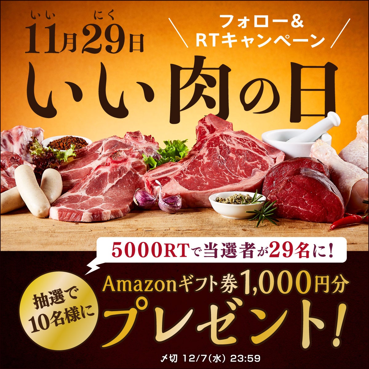 また、11月28日(月)~12月7日(水)の期間中、menuで肉グルメをお得に楽しんでいただける「いいニクの日特集」や、Twitterキャンペーン「いい肉の日キャンペーン」も実施いたします。一年に一度の「いい肉の日」は、ぜひmenuでお楽しみください。