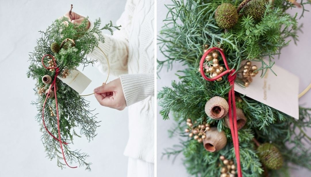 - ハーフムーンのスタイリッシュなクリスマスリース作りで、一味違った演出を