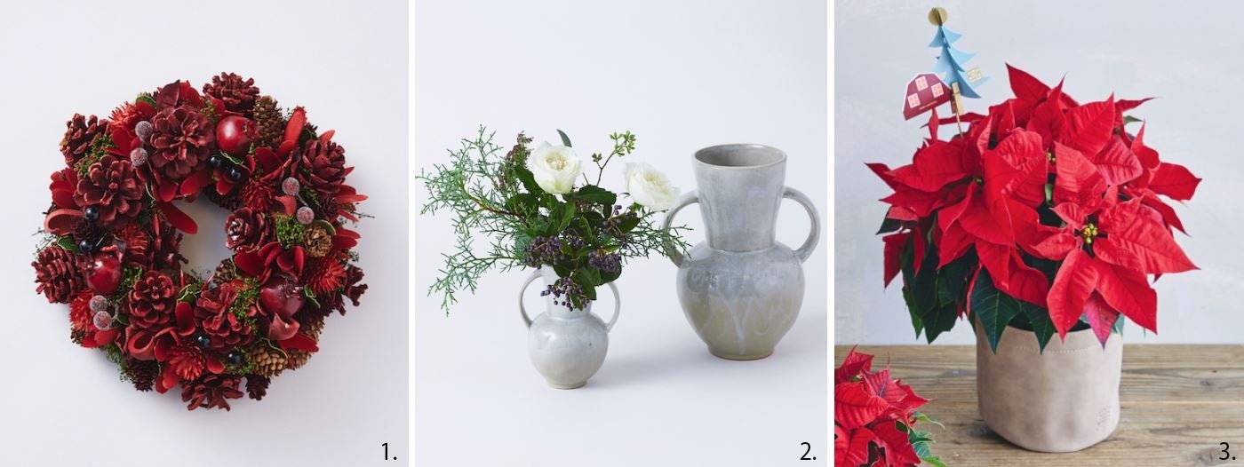 心弾むホリデーシーズンは気分を盛り上げる演出を取り入れたいもの。毎日過ごす部屋を飾り付けて心地よい空間でくつろいだり、大好きな人たちと食卓を囲んだり。幸せな気持ちで心が満たされるクリスマスのひとときを、花とともに自分らしく楽しんでいただけるよう、フラワーコレクションをご用意しました。
