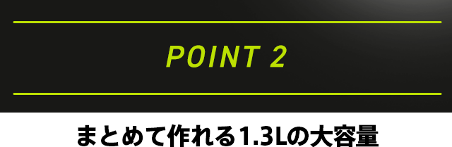 - まとめて作れる1.3Lの大容量!長時間のトレーニングにも最適。