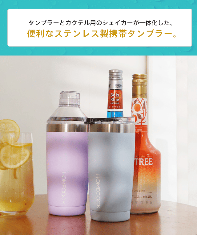 タンブラーとシェイカーの両使いができる携帯タンブラー!昼間はソフトドリンクに。夜はカクテルに。