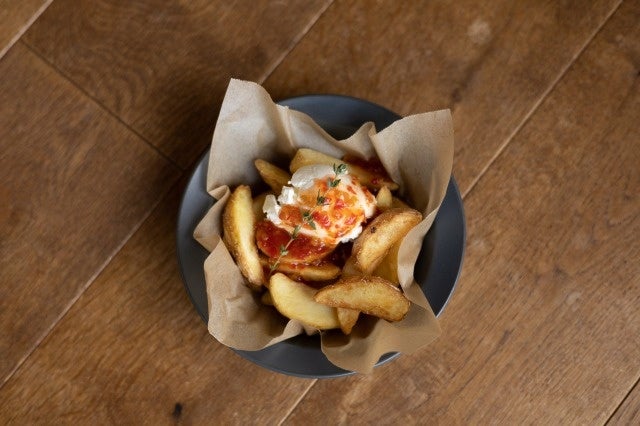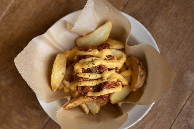 ゴロゴロ食感のチリコンカンと濃厚チェダーチーズソースを合わせた食べ応えのある一品です。