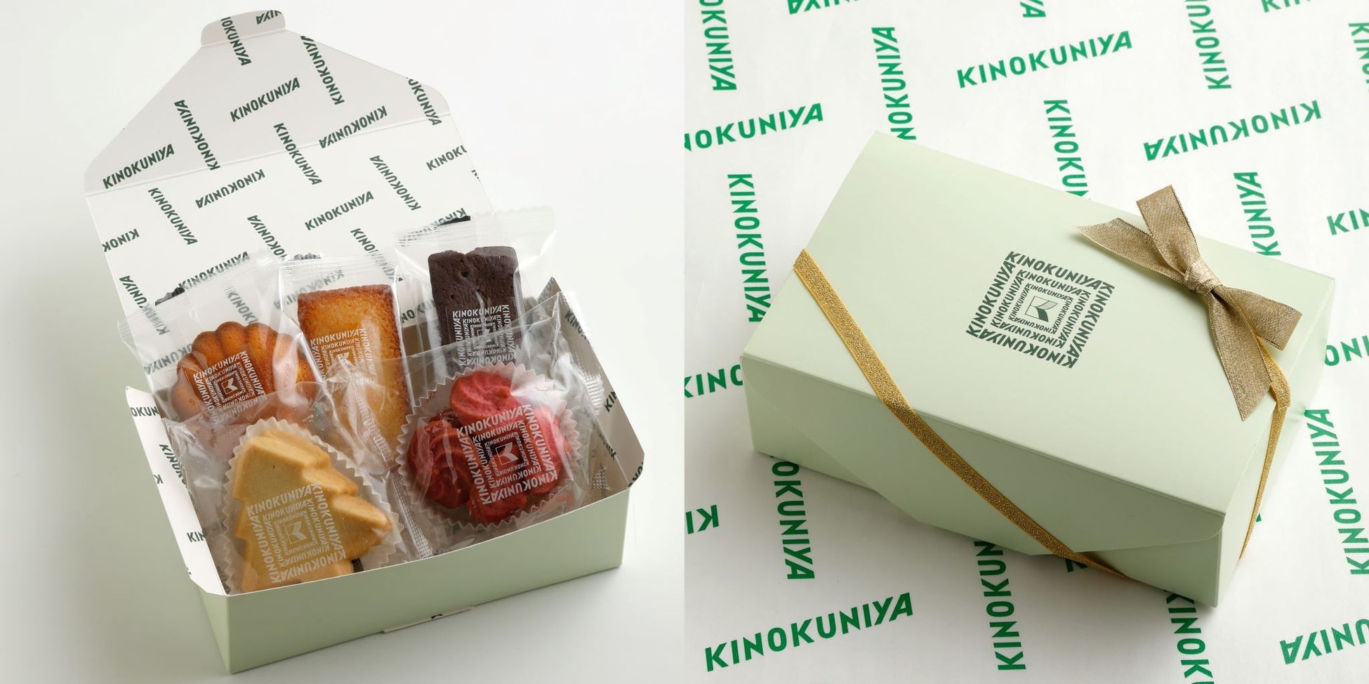 ボックスの内側は、KINOKUNIYAのロゴが目を引く、オリジナル包装紙をモチーフにしたデザイン。