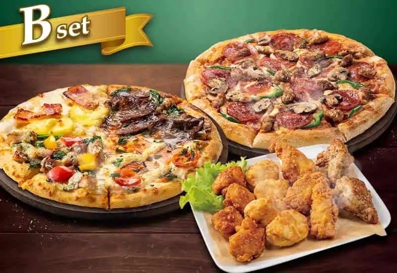 お好きなMサイズピザ2枚+チキンコンボ1個