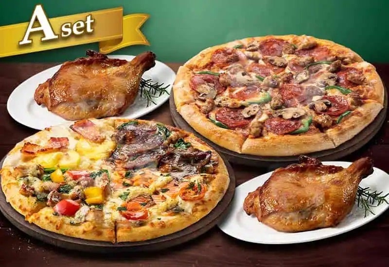 お好きなMサイズピザ2枚+プレミアムローストチキン2本
