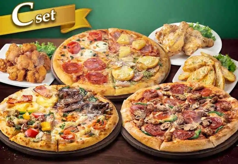 クリスマスや忘新年会など、パーティーをするのにぴったりでお得なクリスマスセットも、11月28日より発売開始。Aセット、Bセット、Cセットと3種類のセットをご用意しました。お好きなピザを2枚もしくは3枚組み合わせいただき、サイドメニューを付けて大変お買い求めやすい価格となっています。ピザの組み合わせは自由自在で、クリスマス特別メニュー以外のピザはもちろん、お好きなサイズもお選びいただけます。人数やご注文時の気分にあわせて、お好きなピザをカスタマイズすれば、パーティーも盛り上がること間違いありません。