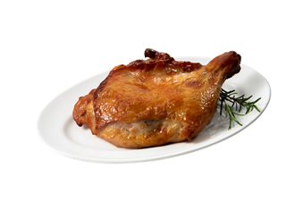 もも肉をじっくりと焼いたジューシーなローストチキンと、ガーリックペーストとガーリックフレークを使用してニンニクの旨みを効かせ、白ワインの風味を閉じ込めた特製ガーリックワインソースを合わせました。赤と黄色2色のパプリカと、緑色のほうれん草が、見た目にも華やかな1枚です。アルコール分はなく、お子さまも安心してお召し上がりいただけます。