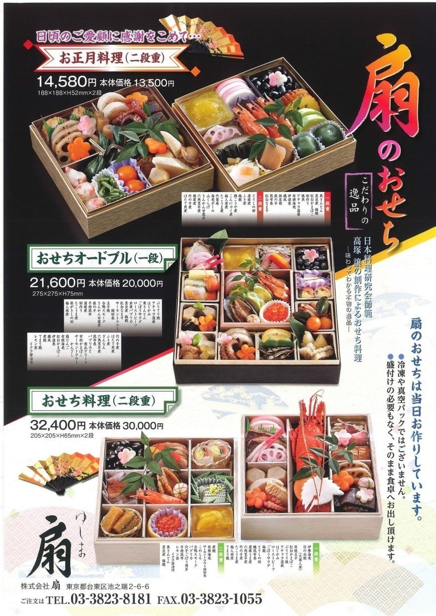 〇2023年 扇特製「お正月料理」:14,580円(税込) 早割価格:13,122円