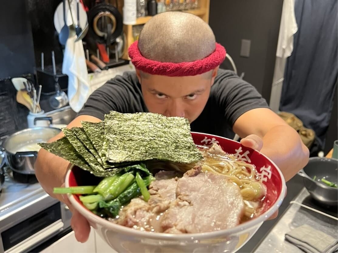 家系ラーメンの要である豚骨スープは、豚骨の炊き方を熟知している「博多ラーメンでぶちゃん」の甲斐師匠の元で修行をし、アレンジを重ねた上に生み出した。
