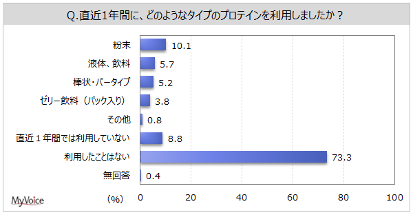 | https://myel.myvoice.jp/products/detail.php?product_id=29204 ※上記設問の他に、「プロテインを利用する頻度」「プロテイン選定時の情報源」も聞いています。 |