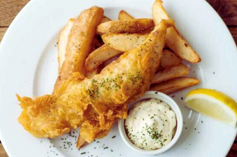 一番人気のフードメニューは、衣に自家製ビールを使った「フィッシュ&チップス」。ほおばった際の「ザクッ」という歯ざわりと、白身魚のふわふわとした食感のコントラストが楽しめます。また、いぶりがっこを使用した特製タルタルソースが、ビールをより一層引き立てます。他にも「自家製ビール漬けピクルス」など、自家醸造ビールを使ったメニューが人気です。