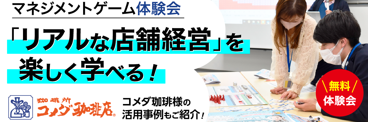 「新入社員研修プログラム」としてはもちろん、コロナ禍での店舗オペレーション再構築に向けた「店長マネジメント研修」にもお役立ていただけるレストランマネジメントゲーム。コメダ珈琲様での活用事例を交えながら、「効果的な使い方」についてご紹介します。さらに、第二部では実際にゲームに触れていただく体験会も予定しております。「導入前に体験してみたい」という方は、ぜひご参加ください!