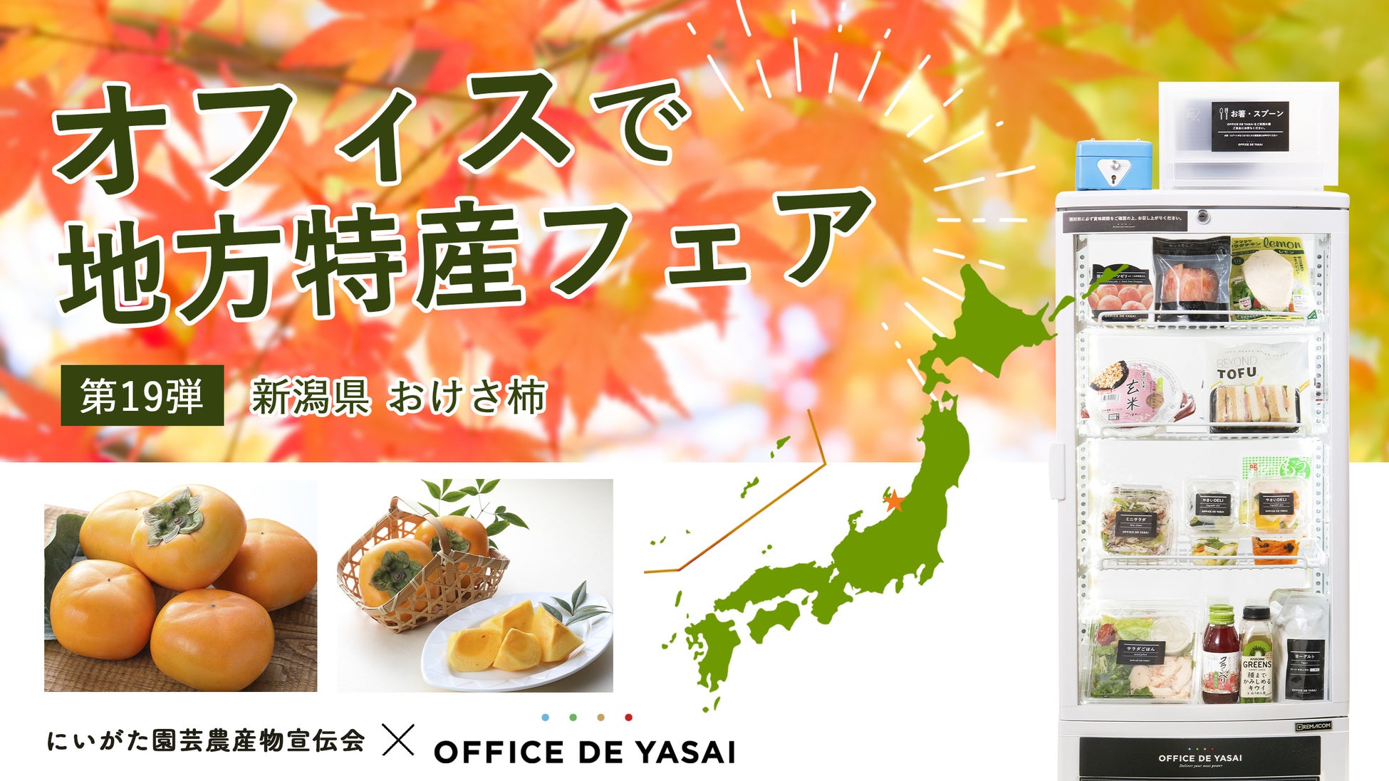 株式会社KOMPEITO(東京都品川区、代表取締役CEO 渡邉瞬)は、全国の地方自治体や各地のJAと連携し、”置くだけ健康社食”「OFFICE DE YASAI(オフィスで野菜)」の冷蔵庫を活用した地方特産品のPRや、無料サンプリングを行う「オフィスで地方特産フェア」を定期的に実施しております。今回は第19弾として、新潟県産ブランド柿「おけさ柿」のサンプリングを実施いたしました。