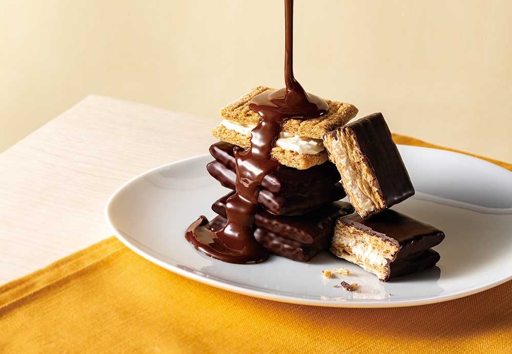 とろりとかけたチョコレートには「銀のぶどう」が誇るオリジナルクーベルチュール“炭火ショコラ”を使用しました。炭火焙煎でカカオ豆を灼くことで、すっきりとした甘さに芳醇な香りとコクがプラスされ 本格感のある味わいに。コクのあるショコラと芳醇なバターの組み合わせに思わずやみつきになること間違いなし!今だけのごちそうチョコサンドをお楽しみください。