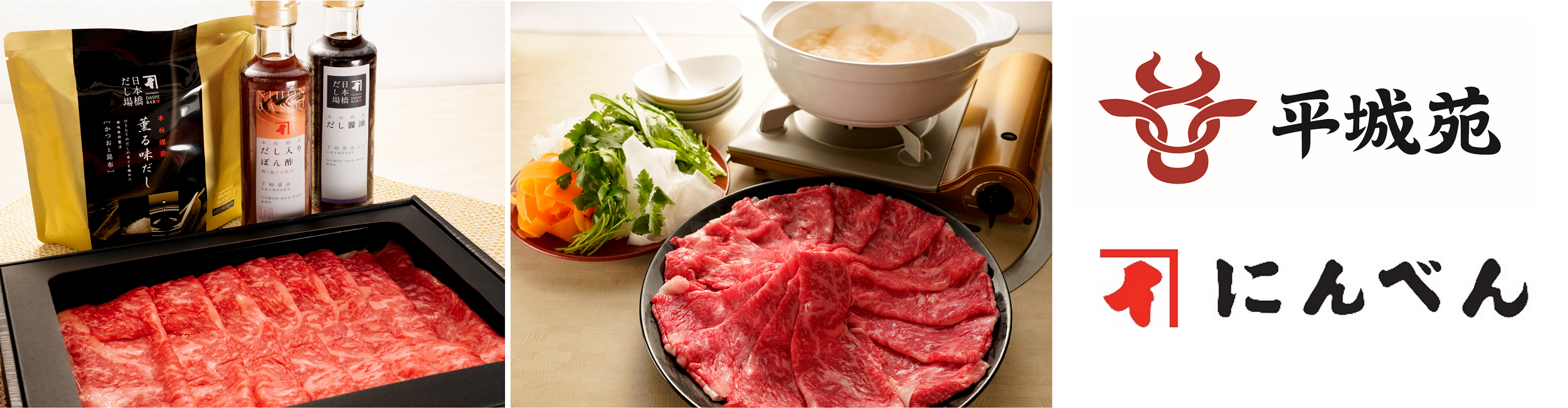 高級焼肉チェーン『平城苑』を展開する株式会社平城苑(本社:東京都足立区 / 代表取締役社長:鏑木 順之)は、鰹節および加工食品の製造・販売を行う株式会社にんべん(東京都中央区 / 代表取締役社長:髙津 伊兵衛)とコラボレーションした「五感で味わう日本の味 A5等級黒毛和牛と東京・日本橋にんべん 本格だししゃぶセット」を11月29日(火)よりオンラインショップ限定で販売いたします。
