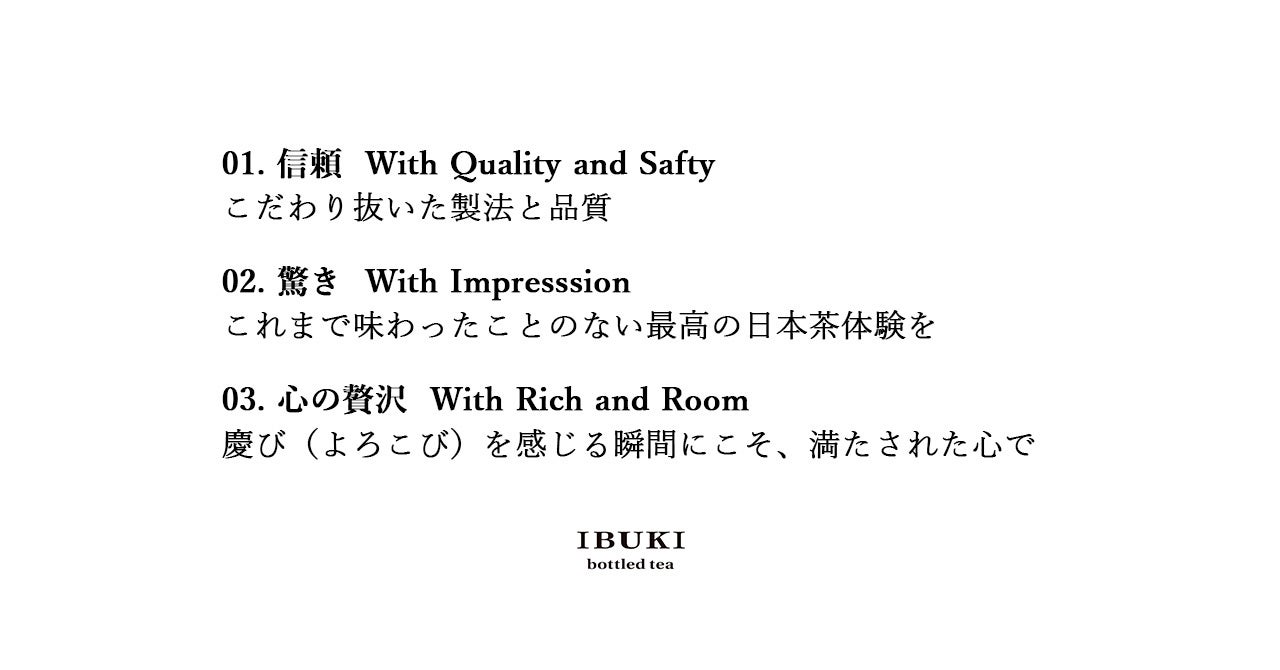 『IBUKI bottled tea』がお客様へお約束する価値として次の3つを掲げています。