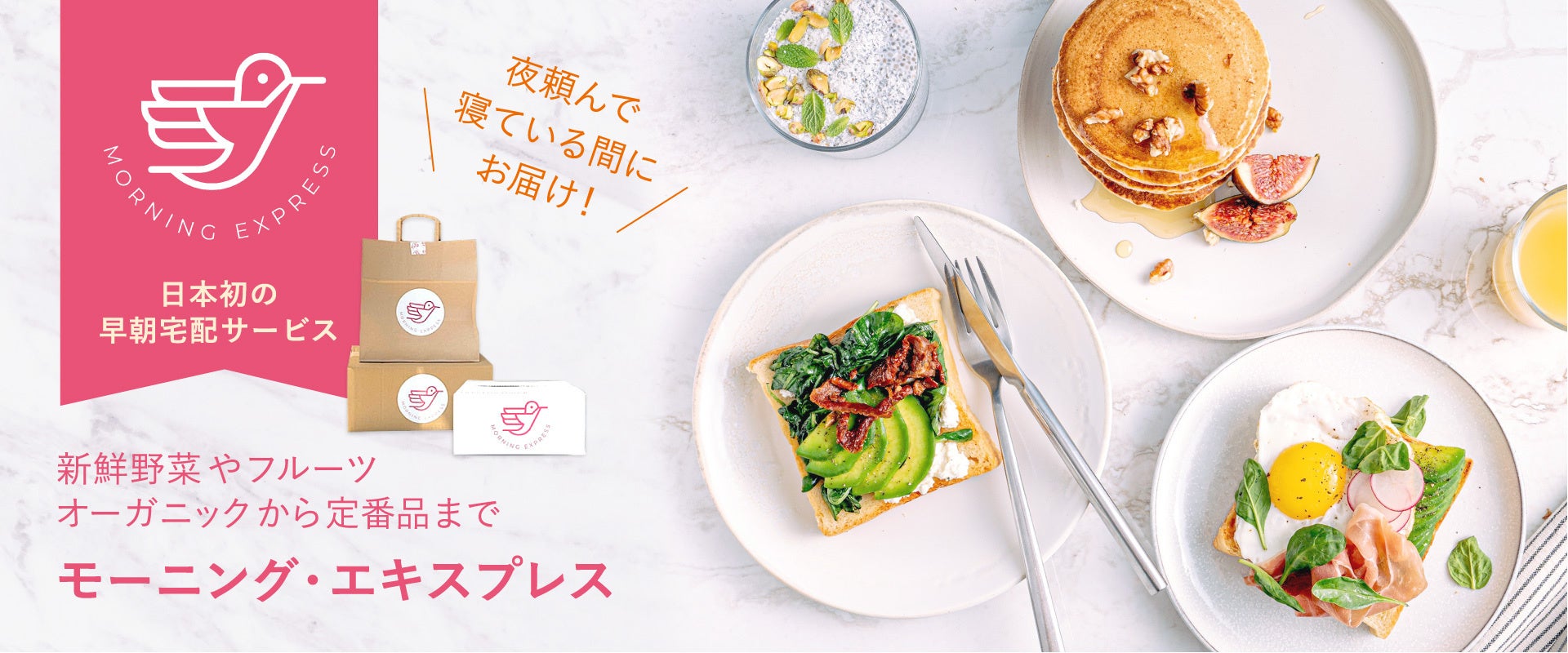 当社は、生鮮食品の早朝宅配サービス「モーニング・エキスプレス(以下「本サービス」)」を運営しています。本サービスは、生鮮食品を夜22:00までの注文で翌朝7:00までに玄関先にお届けする、早朝の時間帯を活用した日本初の物流サービスです。完全置き配型の早朝ルート宅配方式を採用することで、宅配にかかる費用を抑え、忙しい現代社会に合った便利な受け取りを可能にします。