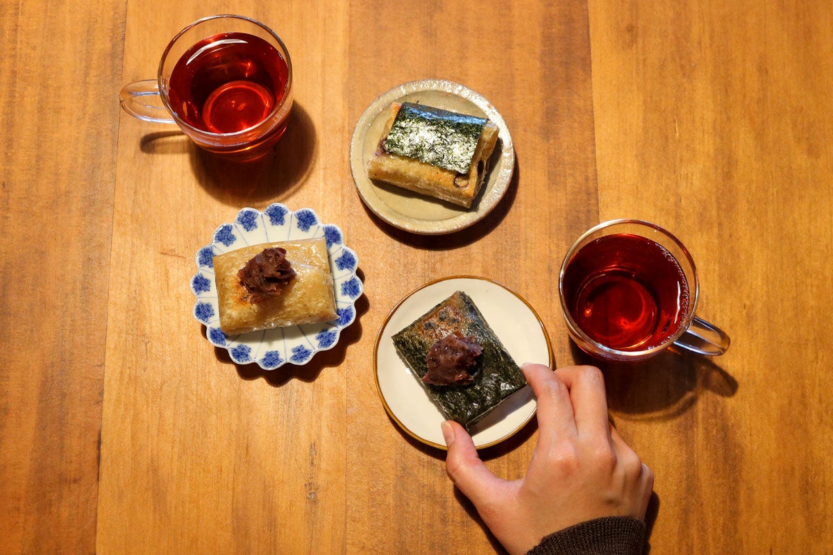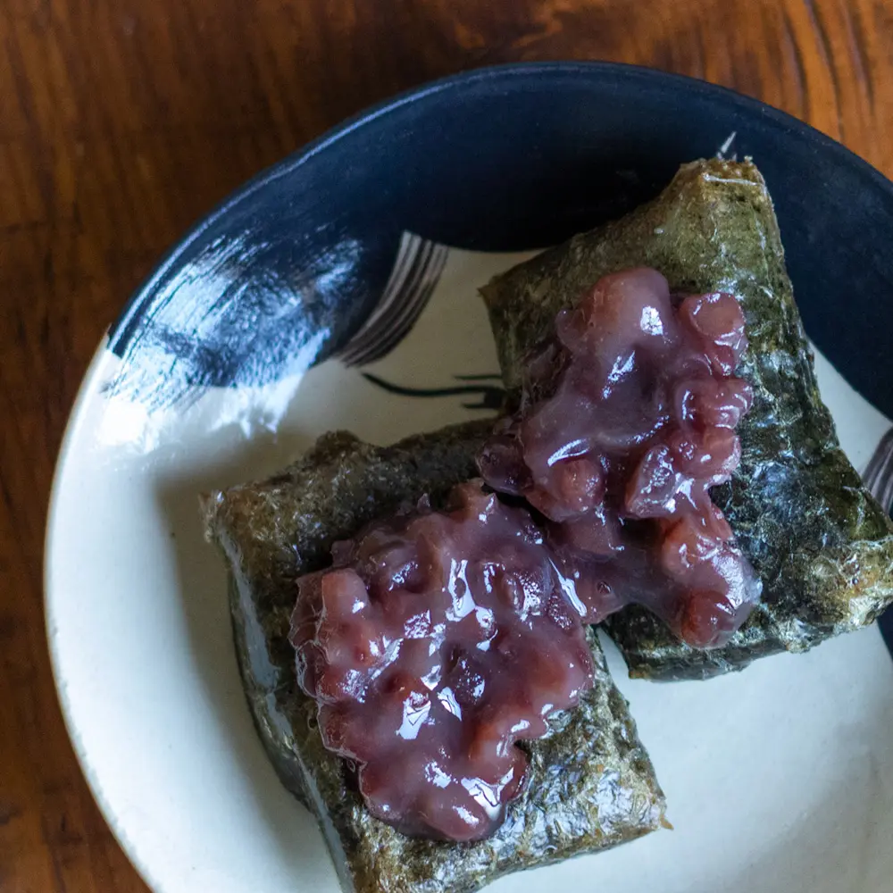 相性の良い小豆と合わせるのがおすすめで、よもぎの香りと玄米の香ばしさがあんこの甘みを引き立てます。