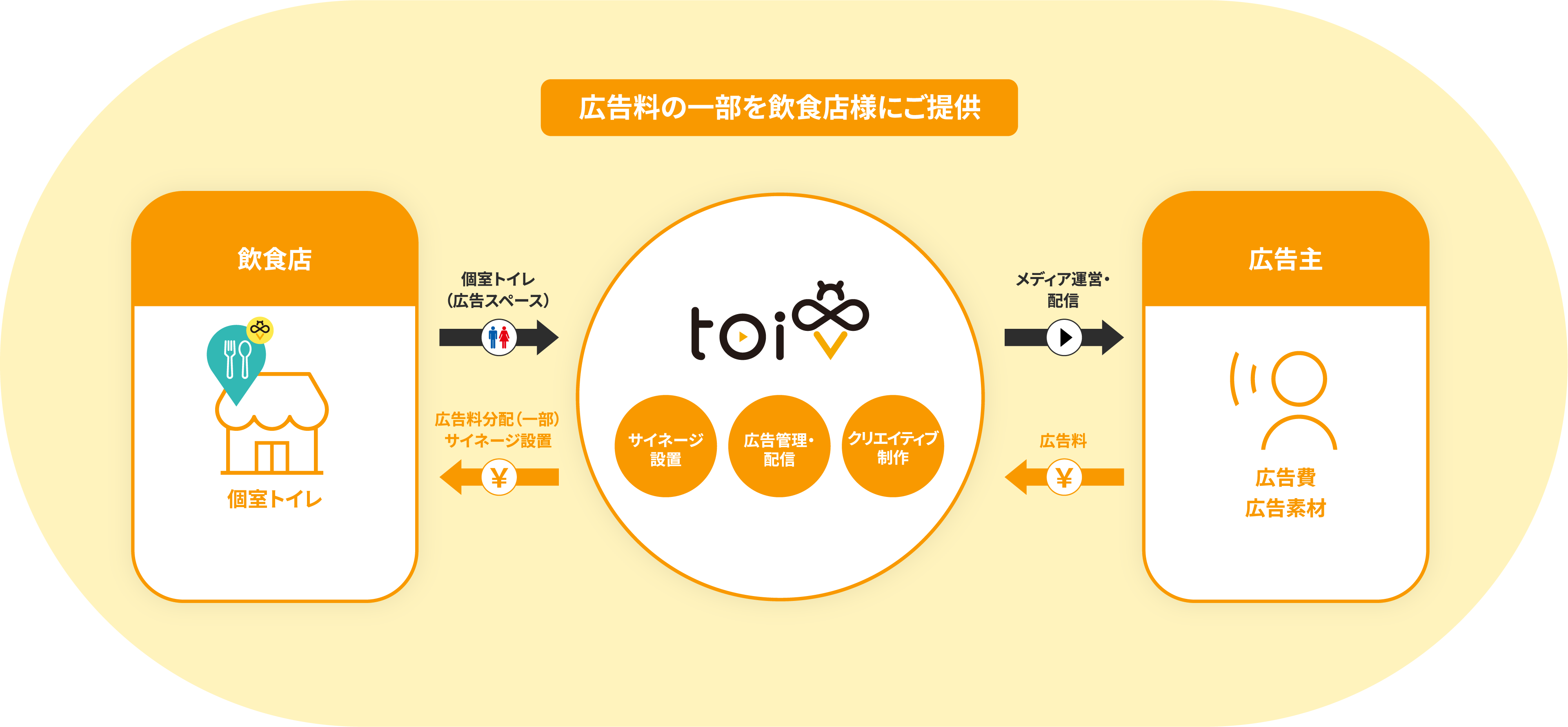 子供の頃から通っていた街の中華食堂が、新型コロナの影響により、22 年の歴史に幕を閉じました。同じようなお店を増やしたくない、飲食店様に貢献できることはないか、そんな思いがきっかけとなり、個室トイレに小型のデジタルサイネージを設置するだけで定期的な副収入を提供する、個室トイレ内動画広告『トイビー』を企画・開発しました。2022年11月より、恵比寿・渋谷・銀座エリア150店舗をモニターとして、『トイビー』テスト配信を開始、本テスト配信の結果に基づき、2022年12月より恵比寿・中目黒・渋谷・銀座・新橋・新宿エリアでさらなる拡大を予定しております。