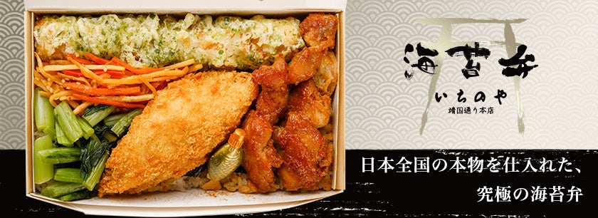 「海苔弁いちのや」は、「ギフトにできるのり弁」をコンセプトとし、全国から集めたこだわりの食材ひとつひとつが主役になるよう丁寧に仕上げた高級のり弁の専門店です。現在、「海苔弁いちのや 靖国通り本店」をはじめとし、東京都・千葉県・三重県に9店舗の実店舗を展開しており、メディアやSNSでも数多く取り上げられています。