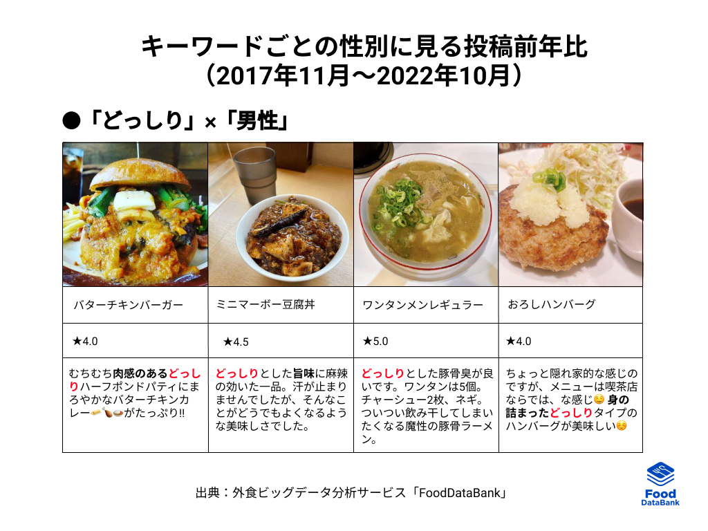 ⚫「キーワード」×「性別」で見る「どっしり」「むっちり」料理とは?