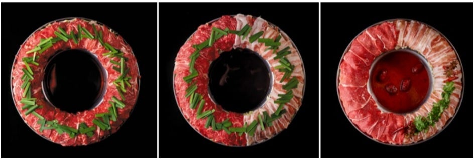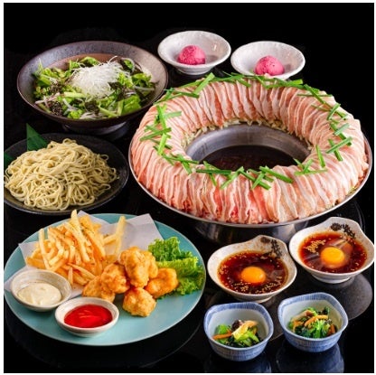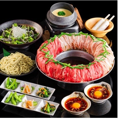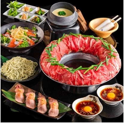 忘年会といえば鍋が一般的ですが、新感覚の鍋「炊き肉」は、中央部が窪んだ鉄板を使用し、その窪みに出汁を入れ、周りにたっぷりの野菜と牛肉や豚肉を色鮮やかに盛り付けたインパクトのあるビジュアルとなっています。TV番組など多数のメディアで紹介され、11月28日のMBS毎日放送「朝ビズらいよん」でも放送されました。