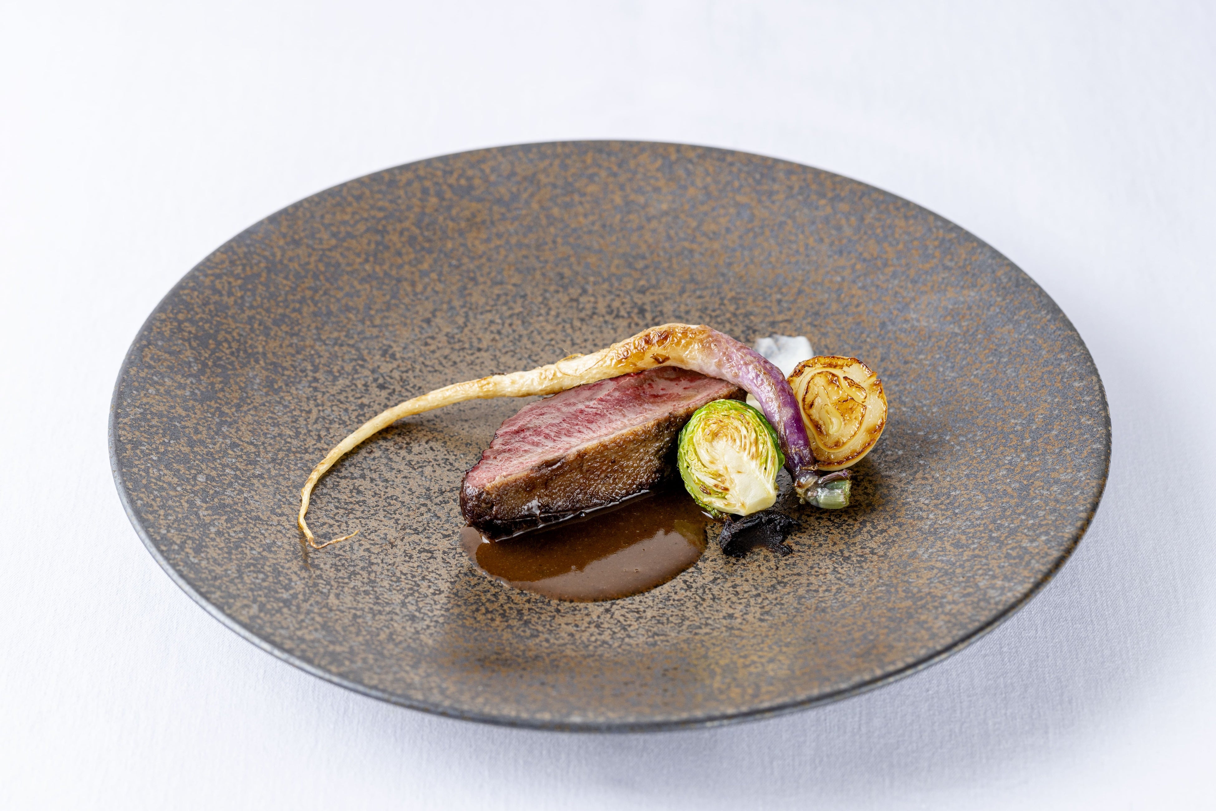 <肉料理> 福岡県糸島産青首鴨のロースト セロリラブのピュレサルミソース