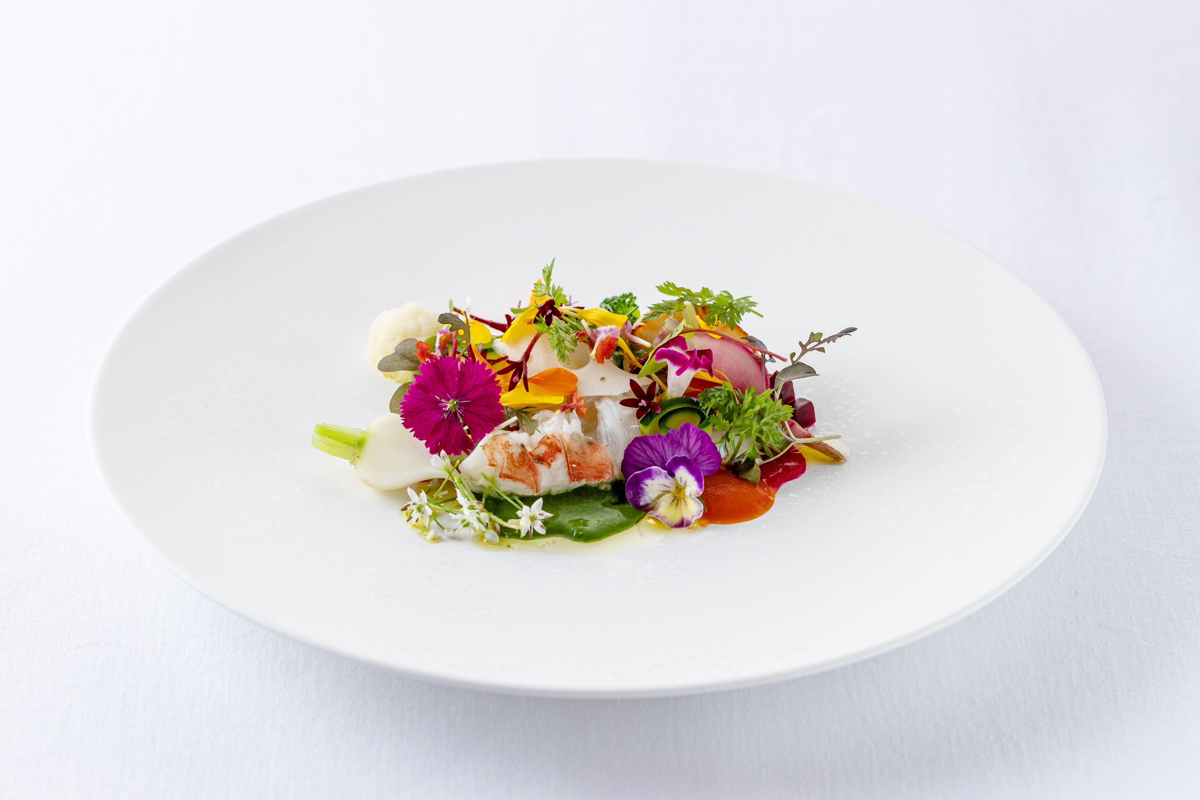 <前菜1> 長崎県産イセエビと帆立のアンサンブル 冬野菜とハーブブーケ