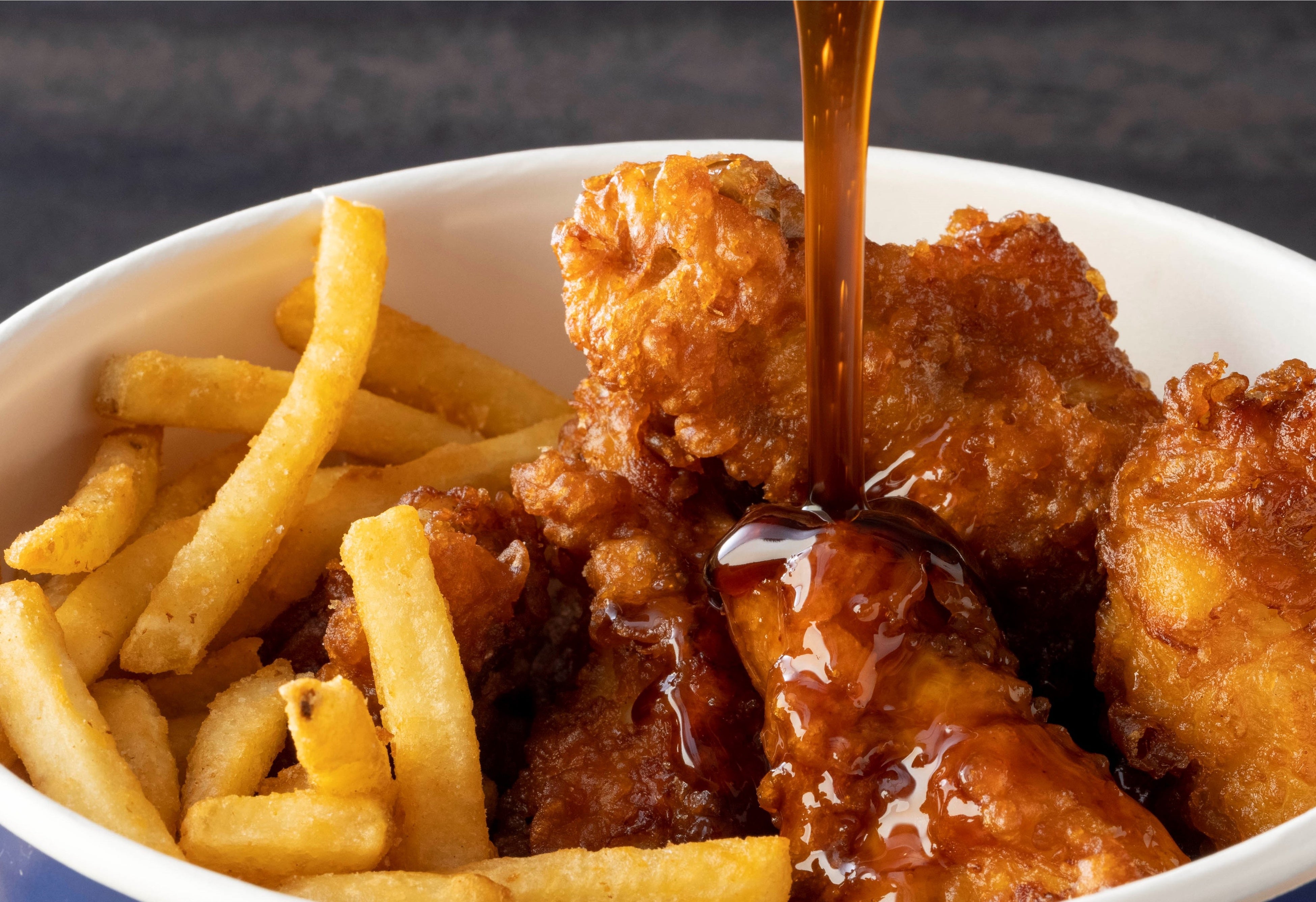 (鶏もも2個+鶏ささみ2個+フライドポテト80g+黒酢あん50g1個)
