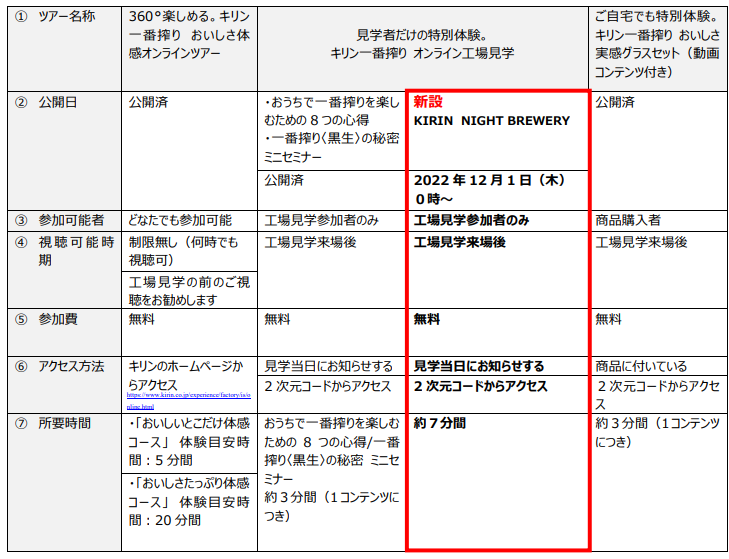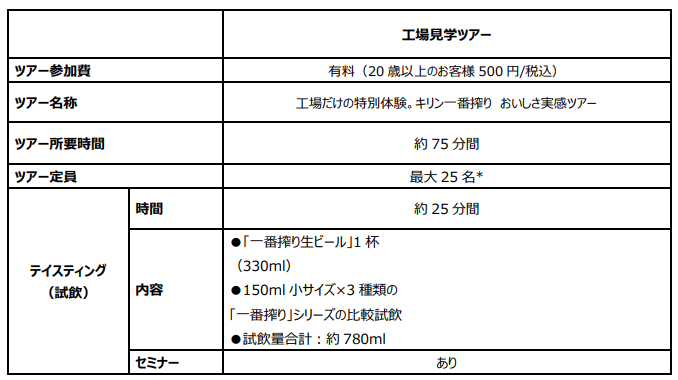 補足資料②:「工場だけの特別体験。キリン一番搾り おいしさ実感ツアー」 概要