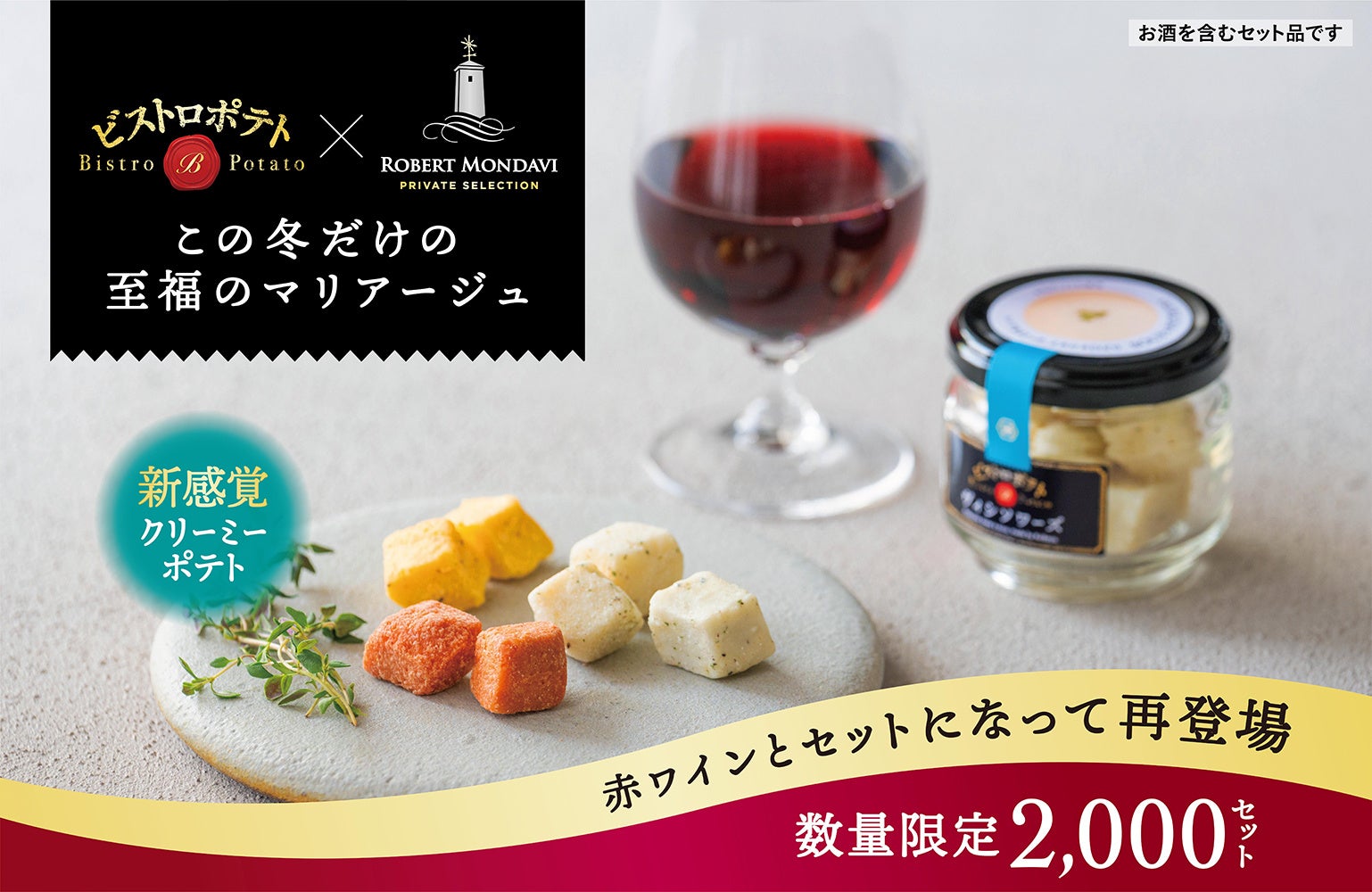 サクホロ食感でギュッと濃縮された旨みが味わえる「ビストロポテト」と、バーボンを熟成した樽由来の、香ばしくキャラメルのような香りが特徴の「ロバート・モンダヴィ バーボン・バレルエイジド カベルネ・ソーヴィニヨン」が生み出す、今だけの濃密なうまみの共演。自分へのご褒美や年末のギフトとして、お楽しみください。