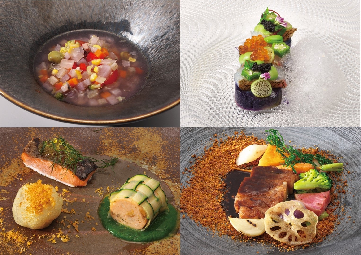 15種類以上の旬の野菜を使ったまるで宝箱のようなスープや身がぎゅっとつまった肉厚な須磨サーモンのグリル、豊かな野菜が育つ神戸の畑をイメージした一皿など、神戸の食の魅力を存分に感じて頂ける数々のお料理を提供致します。また、ドリンクにも、福寿(神戸酒心館)、仙介(泉酒造)、百黙(菊正宗酒造)といった灘の日本酒をはじめ、神戸ワイン、神戸ウォーターレモネードなど神戸のものを豊富に取り揃えています。