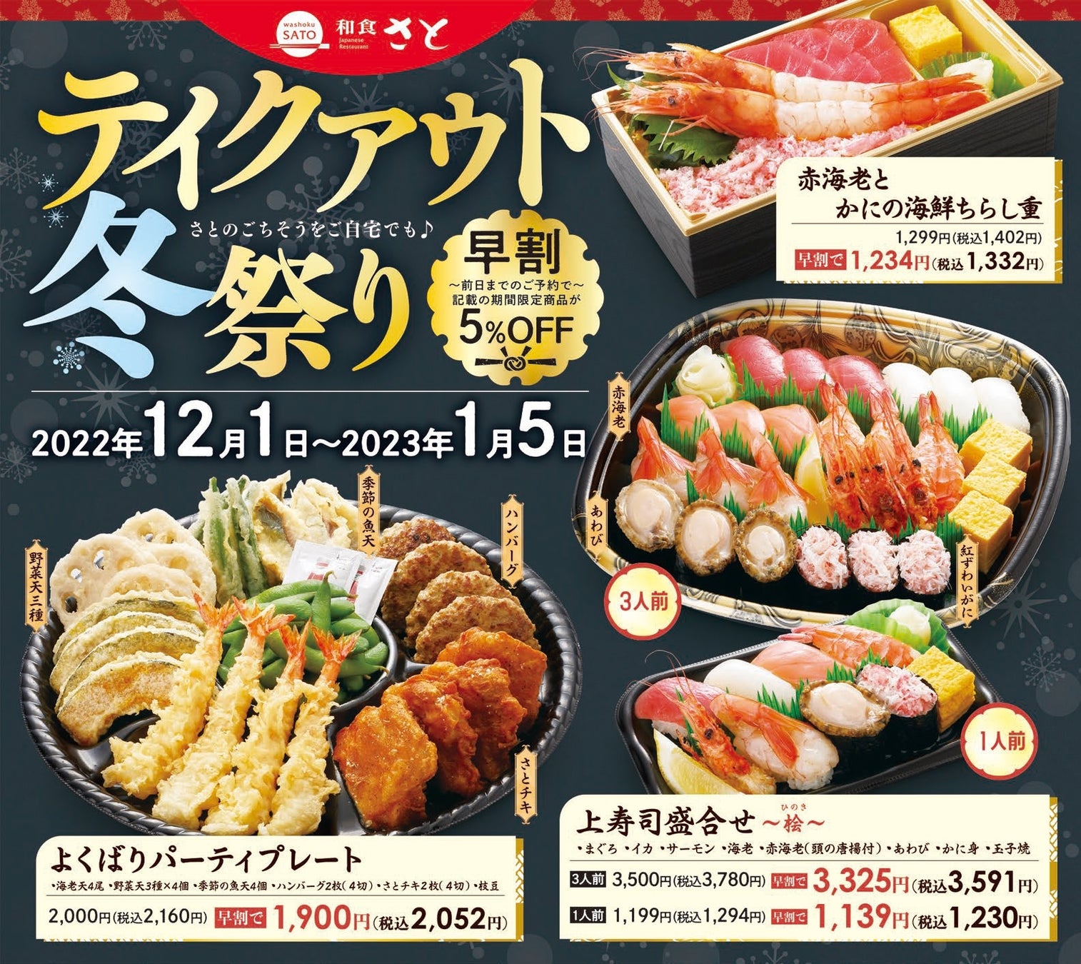 - 和食さと 年末年始は和食さとのごちそうをご自宅でも!!!「早割」でお得にご利用ください!!