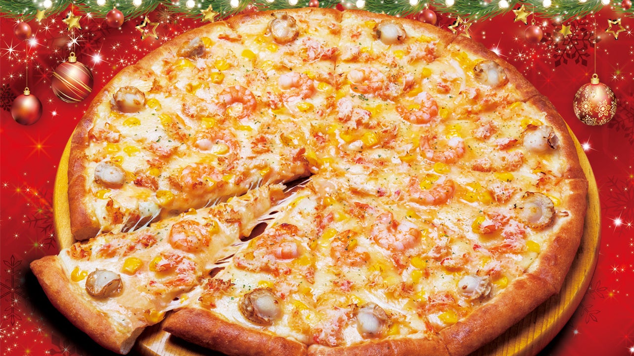 今年のクリスマスセットは、昨年もご好評いただいた『焼きガニの贅沢シーフードクリーム』とピザポケット人気No.1の『照焼チキングルメ』のハーフ&ハーフピザとファミリーコンボをセットにしました。