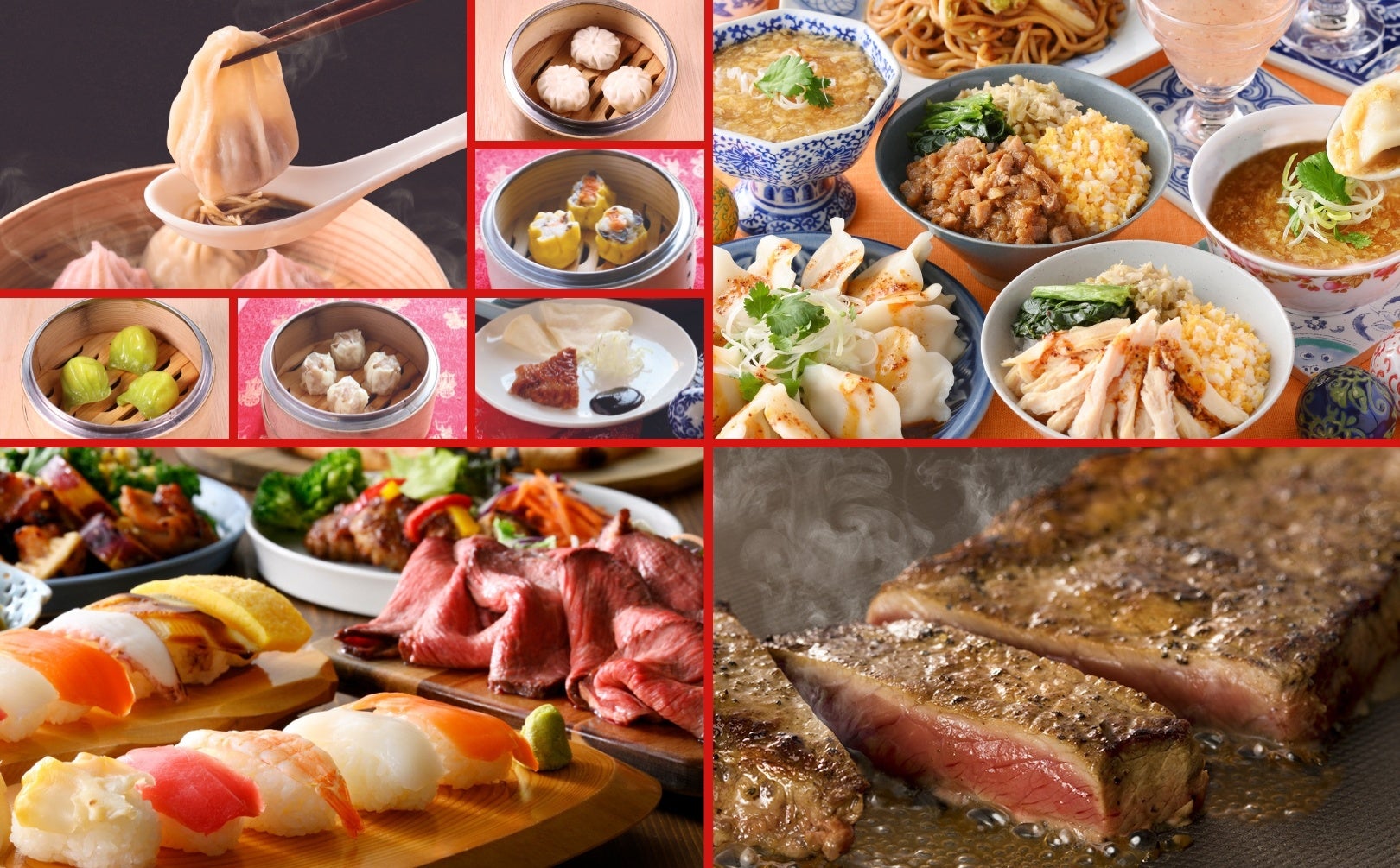 おすすめの『プレミアムコース』では、現在開催中の台湾美食フェアの人気ラインナップのお料理の他に、定番人気の握り寿司や、熱々の肉汁たっぷりの自家製小籠包など7種類の飲茶、『ビーフ・トンテキ・チーズインハンバーグ』のグリル料理がすべて食べ放題で楽しめる豪華なコース!
