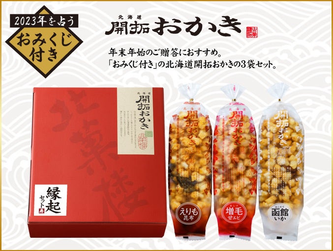 ●北海道開拓おかき縁起セット〈3袋入〉*おみくじ付き