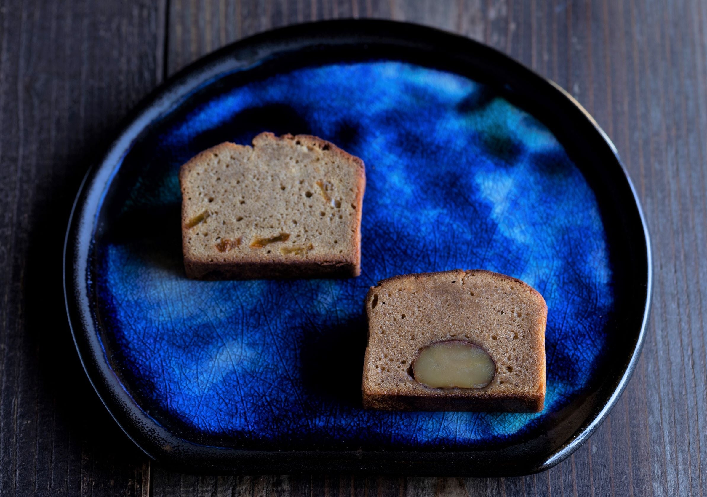 発酵バターと徳島県産和三盆を贅沢に使用した、しっとり和風パウンドケーキ。上品な甘さと素材の香りをゆっくりと濃厚に愉しむことができる逸品です。山の木葡萄と渋皮栗は、山の木葡萄のピュレを練り込み、渋皮栗を贅沢に丸ごと入れ焼き上げました。金柑と焙じ茶は、香り豊かな金柑を千切りにし、焙じ茶を練り込んだ生地に混ぜています。