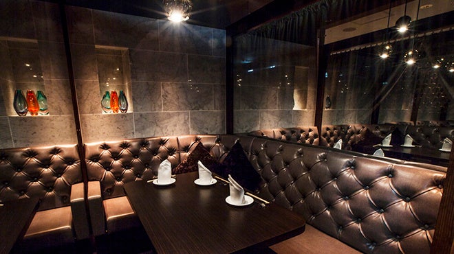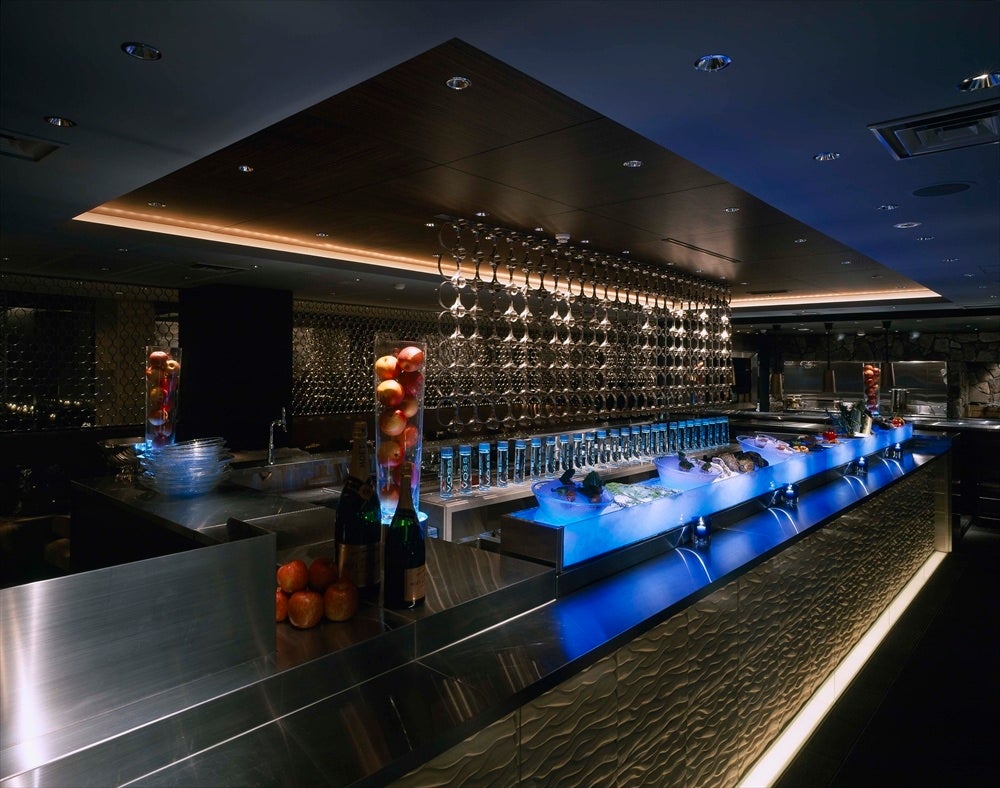 ブルーのライトが輝くシックな雰囲気にアートを織り交ぜた大人の贅沢な空間には、カウンターからテーブル・お座敷・ソファー席などのゆったりとした個室もご用意し、お客様の多様なシーンを演出。