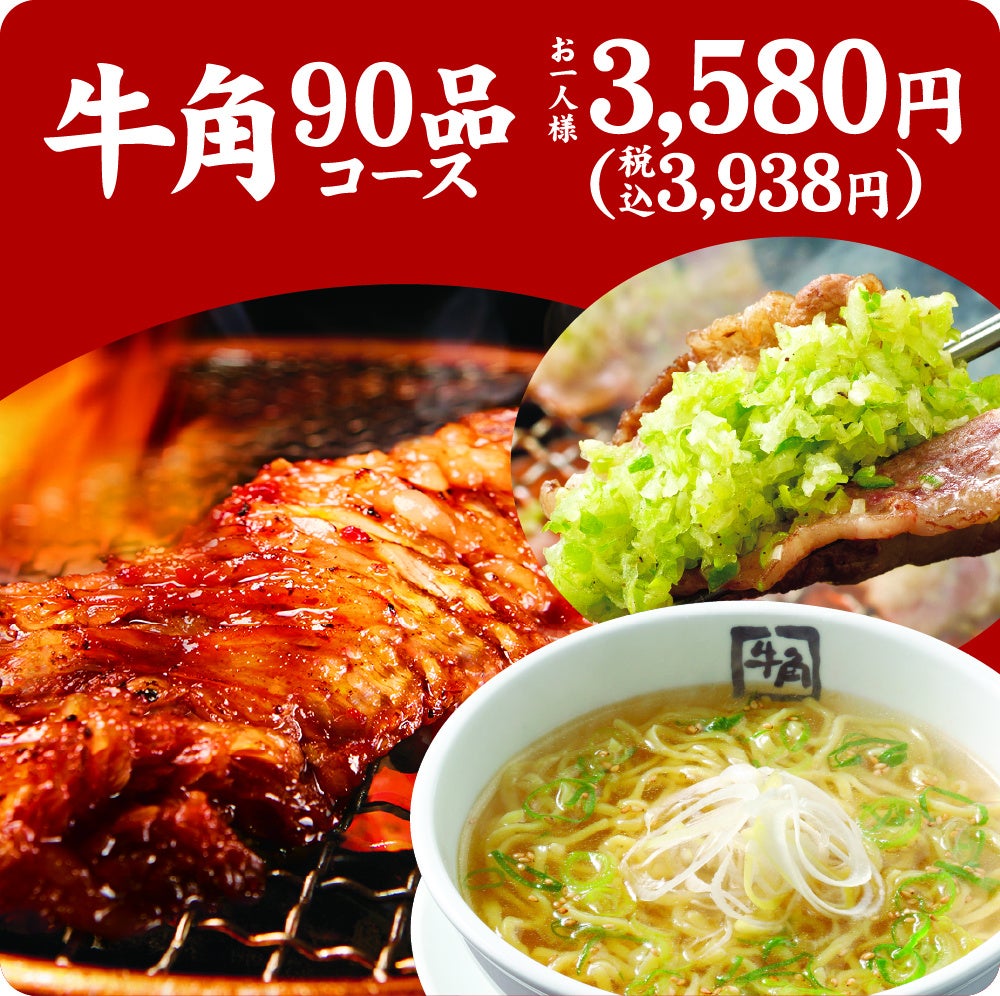 ■牛角90品コース お一人様3,580円(税込3,938円)