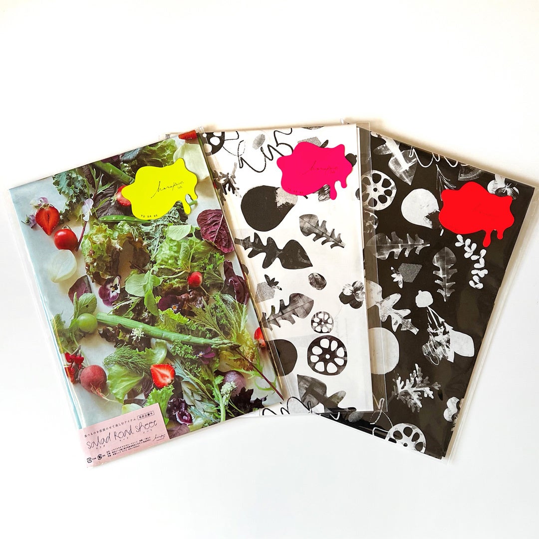 耐水性耐油性加工が施されているシートなので直接食事を載せることができ、大皿小皿いらずで食卓を一気に華やかにしてくれます。後片付けも丸めて捨てるだけ。今ならこうぶつヲカシを購入した方にサラダロードシート1枚入りを550円で同梱出来るキャンペーンも行っています。