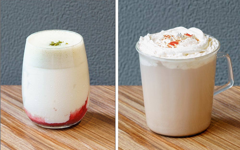 ピスタチオペーストとミルクで作ったカプチーノにピスタチオと相性抜群のベリーソースを加えたオリジナルドリンクです。ピスタチオの香りとベリーの酸味を楽しみください!
