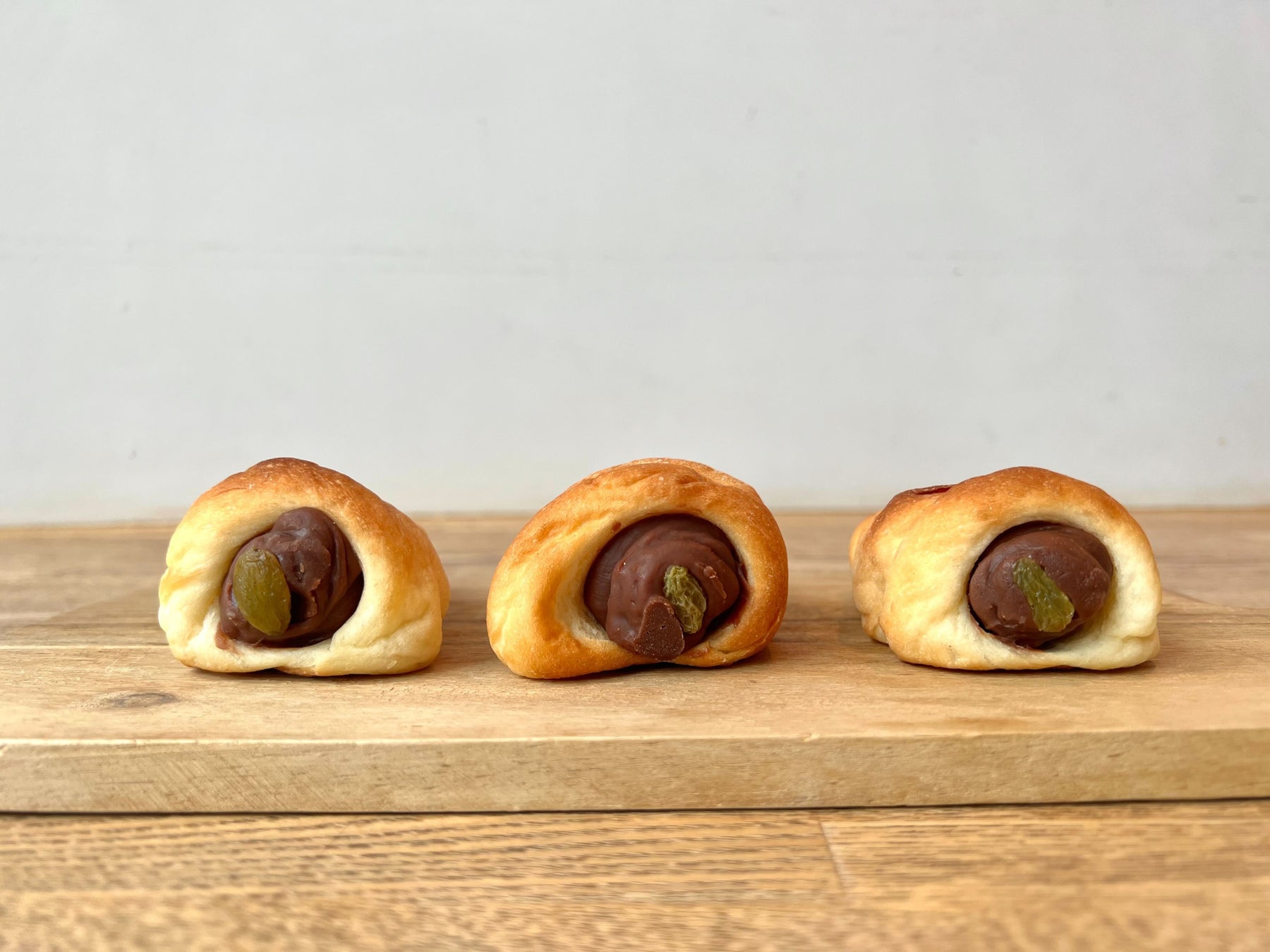 ヘーゼルナッツチョコを使用したチョココロネ。香ばしいヘーゼルナッツの香りが広がります。