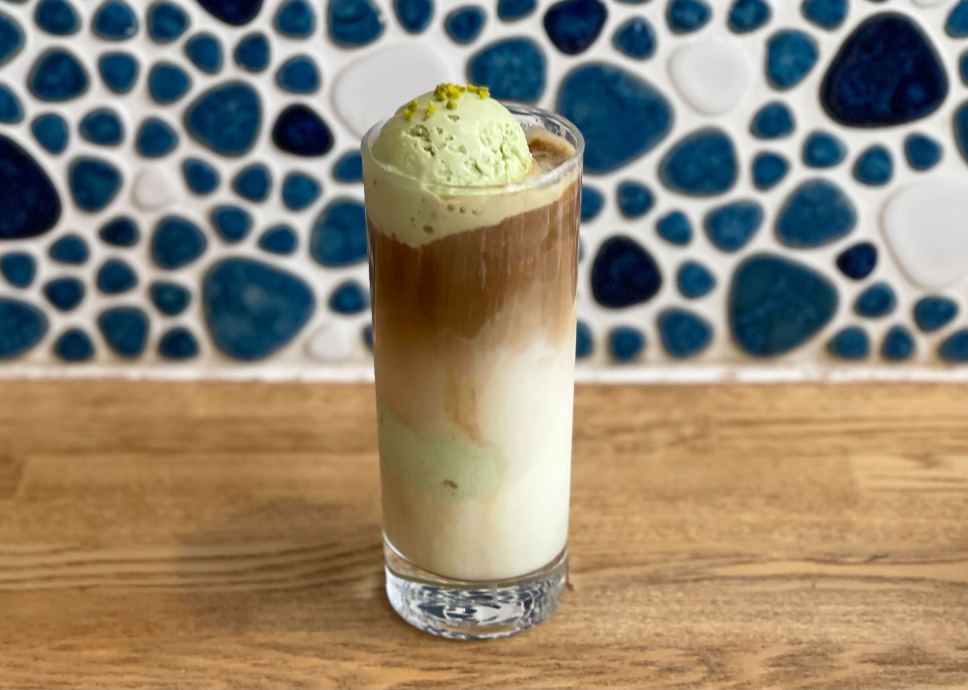 ローストナッツ入りピスタチオアイス、ミルク、ピスタチオソース、エスプレッソを合わせました!アイスが溶けていくとより濃厚なピスタチオの風味が強くなり味の変化もお楽しみ頂けます!