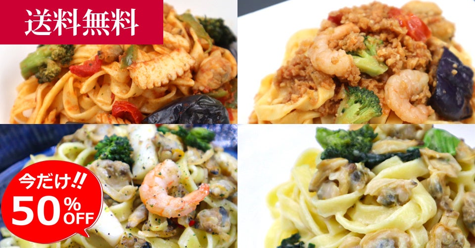 【内容・容量】アサリたっぷりのクリームパスタ350g、海鮮トマトパスタ350g、海鮮アヒージョ風パスタ300g、海老入りボロネーゼパスタ300g 各1食
