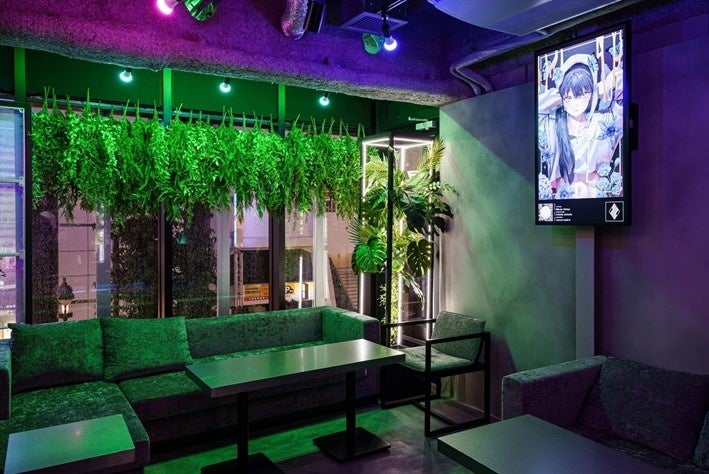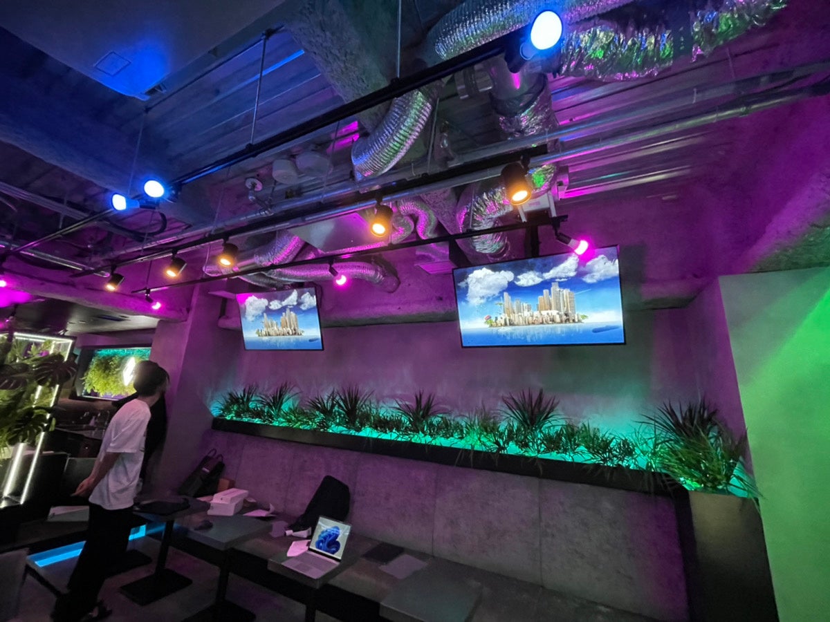 ボタニカルと近未来が融合された空間は、展示会も視野にいれた作りとなっており、世界的デジタルアーティスト「ケイゴイノウエ氏」が書き下ろした作品が展示されています。今回LED TOKYOが導入したデジタルサイネージにも、さまざまなアート作品が表示されています。