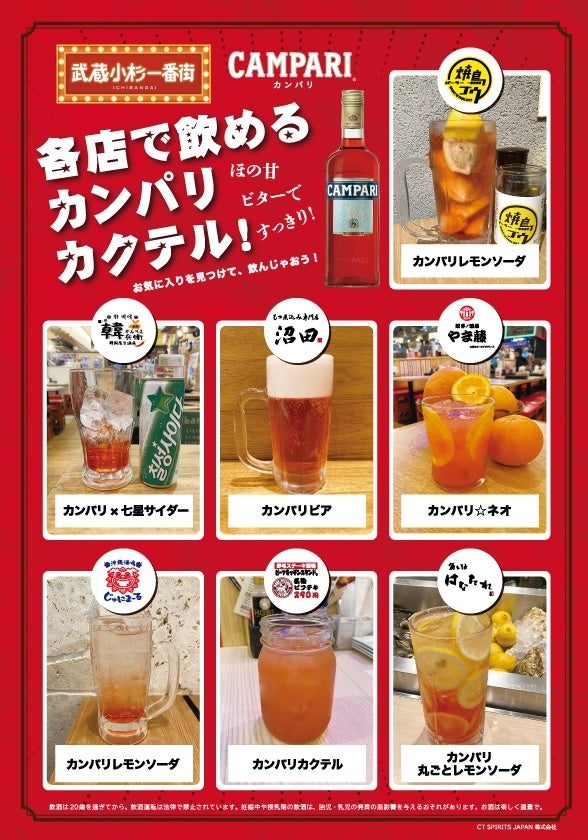 CT Spirits Japan(東京都渋谷区)は、様々な業態の店舗が集まり若者に人気のスポット「武蔵小杉一番街」で、カンパリの期間限定プロモーションを実施いたします。