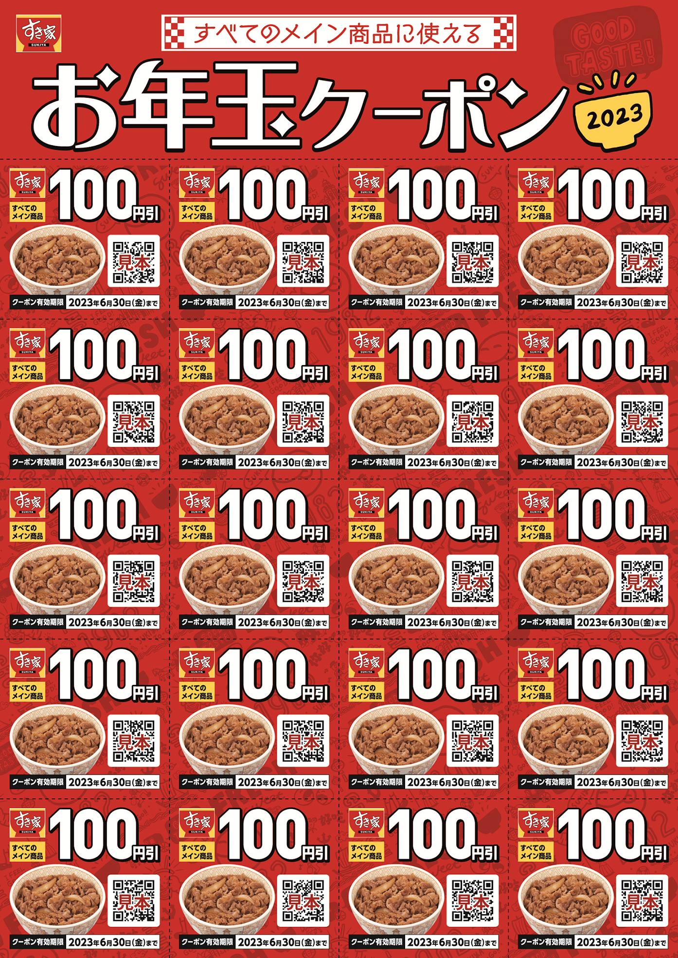 全国のすき家でご利用いただけるお年玉クーポン券です。